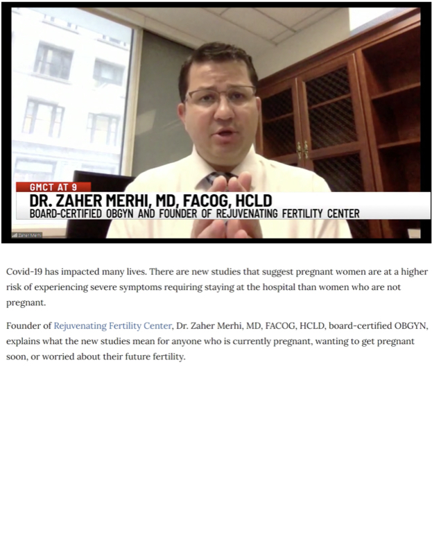 In the segment entitled, ” Certified fertility physician explains results of new studies on pregnancy and COVID-19,” Dr. Merhi shared insight on the symptoms of Covid-19 on pregnant women and explained what the new studies mean for anyone who is currently pregnant, wanting to get pregnant soon, or worried about their future fertility. Dr. Merhi stated, “It’s very important to be careful as a pregnant woman because if you get it not only will it affect you, but also it can have impact on the fetus and pregnancy itself.”